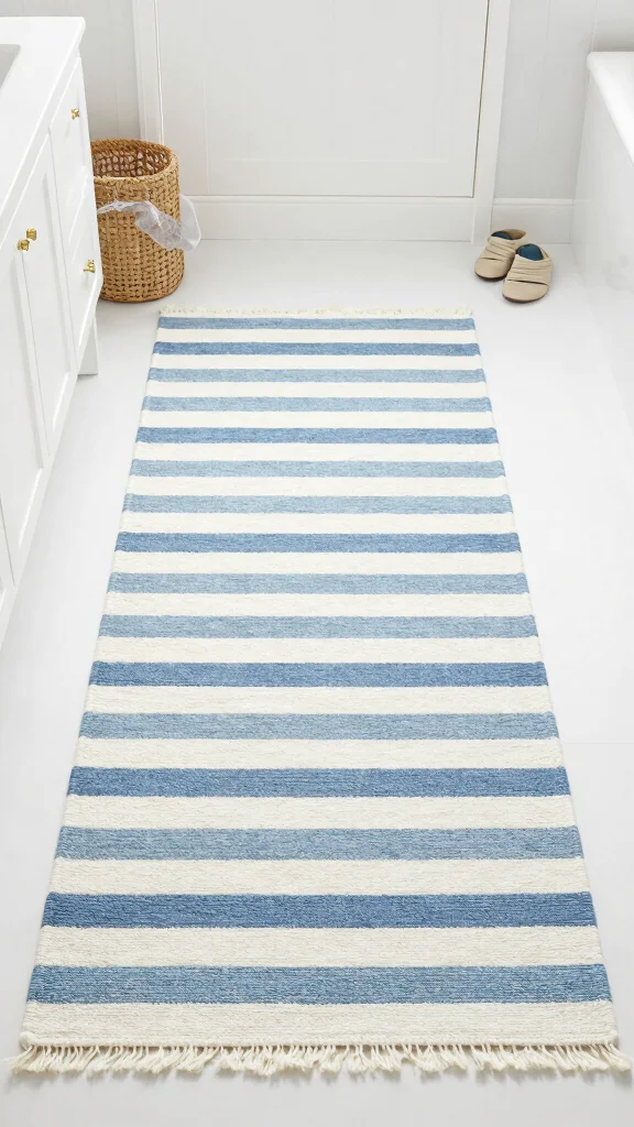 Classic striped runner rugs are a timeless choice that can elevate any bathroom. Their versatility allows them to fit into various styles, from nautical to modern chic. Stripes can create an illusion of spaciousness, making them ideal for smaller areas. Picture bold stripes enhancing a compact space, adding both style and dimension.
