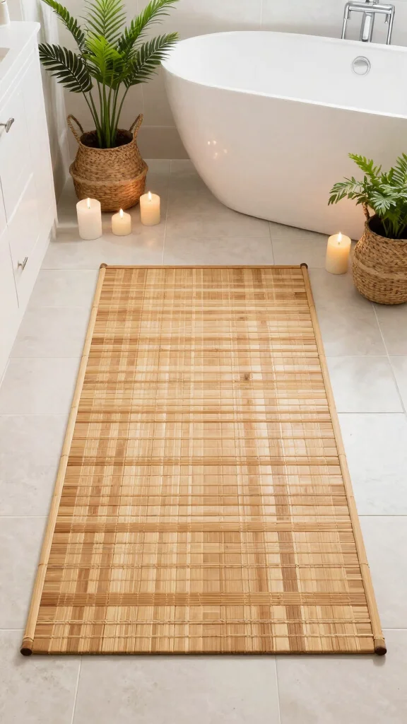 Bamboo rugs are a modern and stylish addition to any bathroom, offering a sustainable option that looks great. Made from rapidly renewable bamboo fibers, they resist moisture and mold, making them perfect for wet environments. Their natural beauty adds a sleek touch, enhancing a spa-like atmosphere. Imagine a smooth bamboo rug paired with calming colors, creating a tranquil retreat at home.