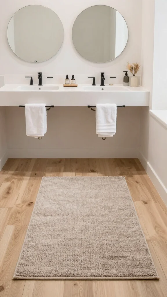 Layering rugs can transform your bathroom into a visually rich space. By combining a woven rug with a larger, softer base rug underneath, you create a cozy and stylish effect. Imagine the inviting look of layered textures, enhancing both comfort and aesthetics in your sanctuary.