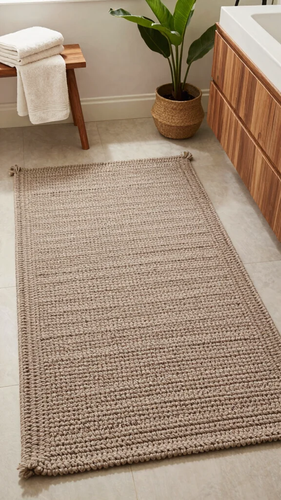 This ensures your rug complements crochet bathroom decor and aligns with eco-friendly bathroom ideas.