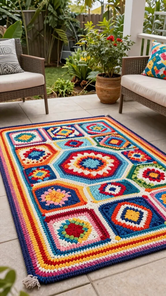 Crochet rugs can extend beyond indoor use! Creating indoor-outdoor crochet rugs allows you to enjoy comfort and style in your outdoor spaces. Made from durable, weather-resistant yarns, these rugs are perfect for patios or gardens, offering versatility for your home.