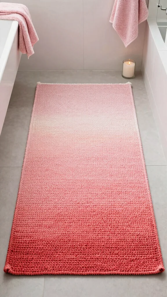 Typical fits include 20×30 inches for around the sink, 24×40 inches for a runner, or circular mats around 24 inches in diameter for a tub or shower entry. Choose shape based on what your space can accommodate and how your bathroom interior design flows. For crochet bathroom rug projects, measure area first, then plan repeats to create even edges.