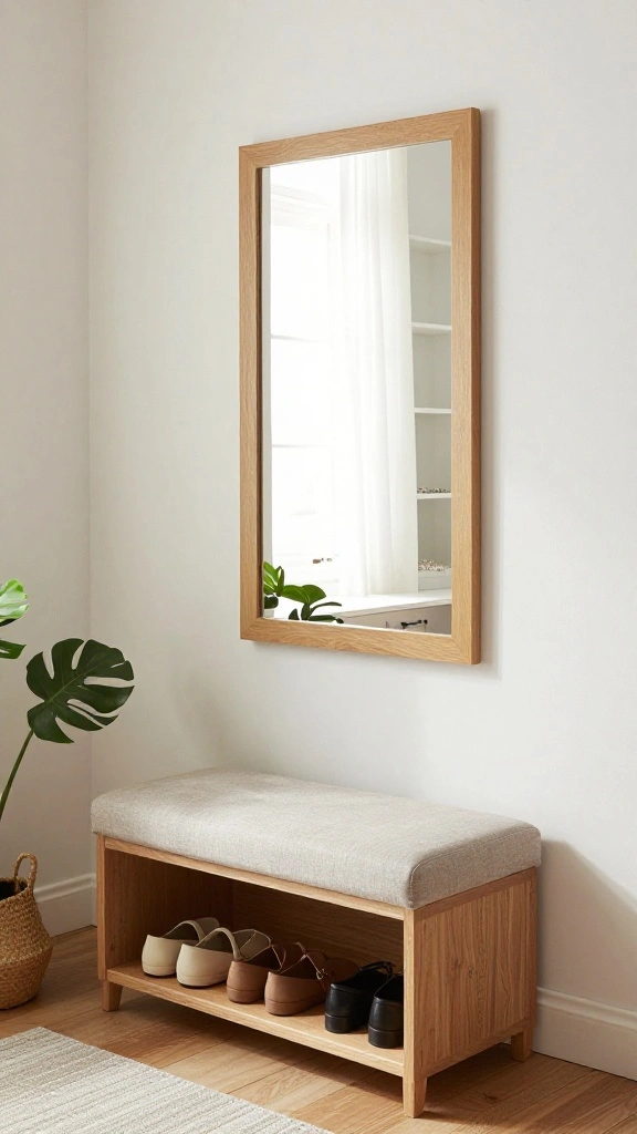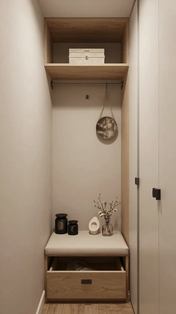To maximize functionality, consider a storage ottoman that offers seating while keeping shoes tucked away. A folding chair can be easily stowed when not in use, and a mirror with built-in storage keeps your makeup organized.