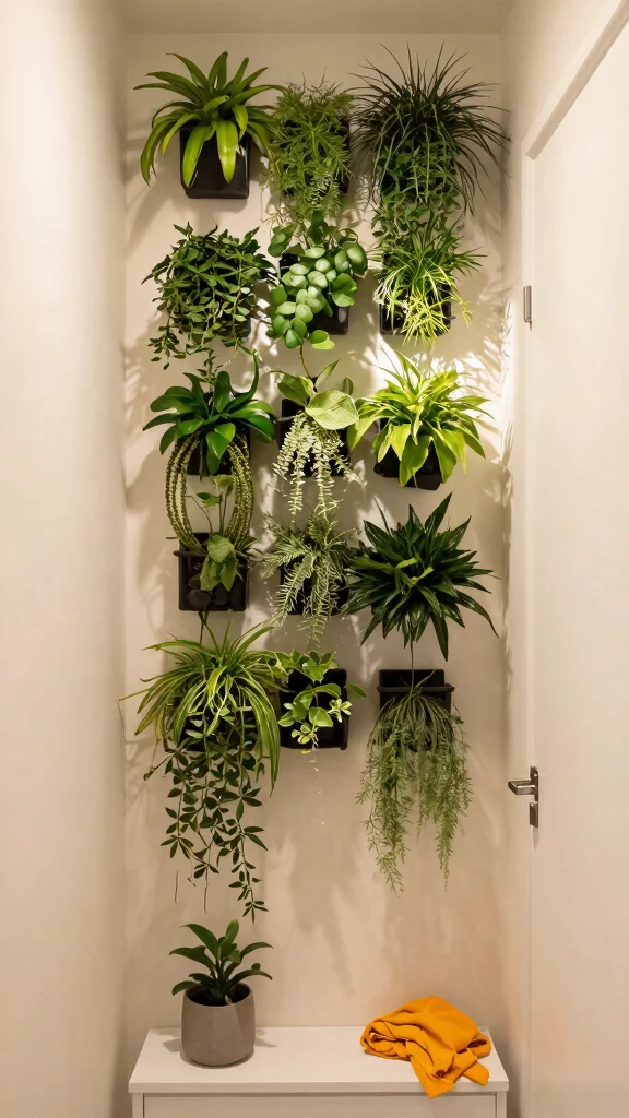 Wall-mounted planters or hanging pots with trailing plants can create an inviting atmosphere. Opt for low-maintenance plants like pothos or ivy that thrive in lower light conditions.