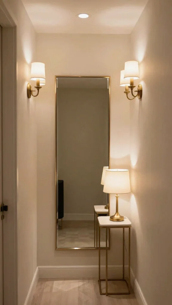 Good lighting not only improves usability but also adds a stylish flair to your narrow dressing room.