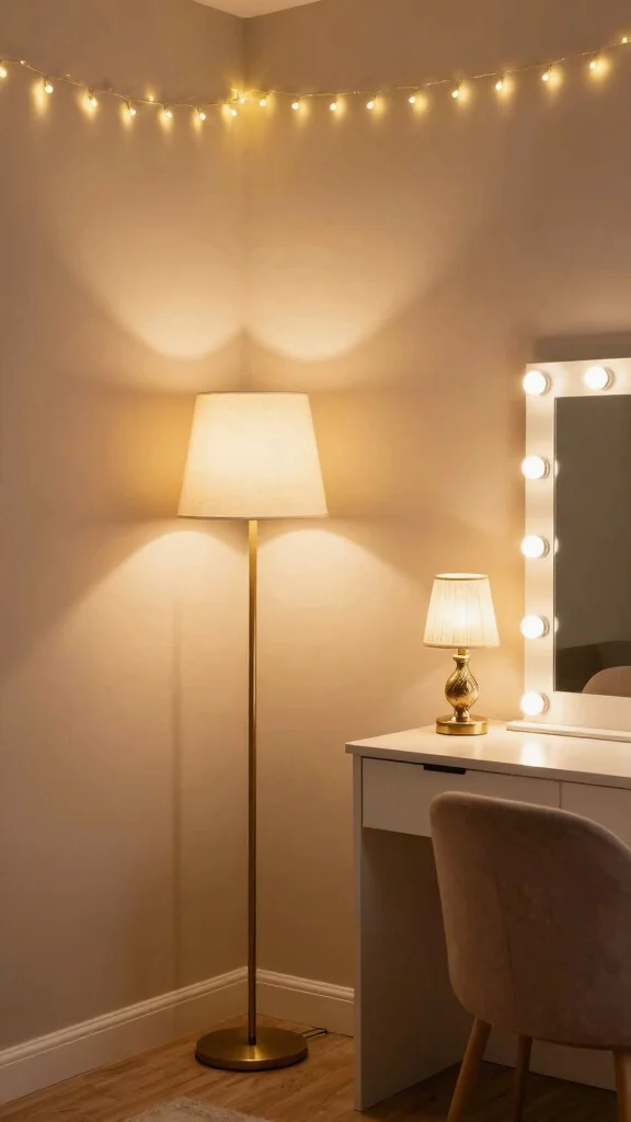 Incorporate string lights for a whimsical feel, or consider a stylish floor lamp to brighten dark corners. A table lamp on your dressing table can provide essential task lighting while adding decorative flair.