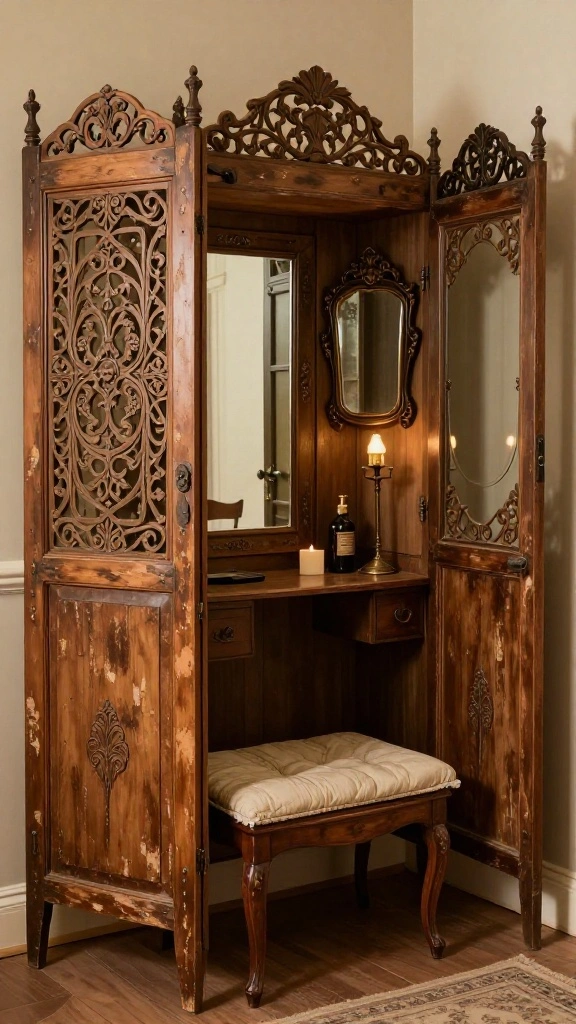 Vintage screens and shutters can beautifully enhance your dressing room’s character while effectively dividing the space.