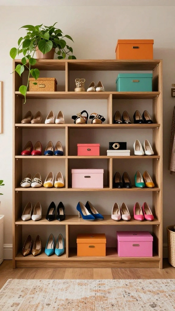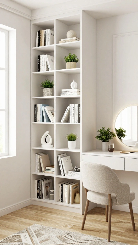 Transform your dressing area with chic open shelving units that combine style and functionality. These versatile dividers create distinct zones while providing a beautiful display for accessories, shoes, or books. Choose materials like reclaimed wood for warmth or sleek metal for a modern touch, allowing for personalization that reflects your aesthetic. Adding decorative boxes or plants can create a cohesive look while keeping clutter at bay.
