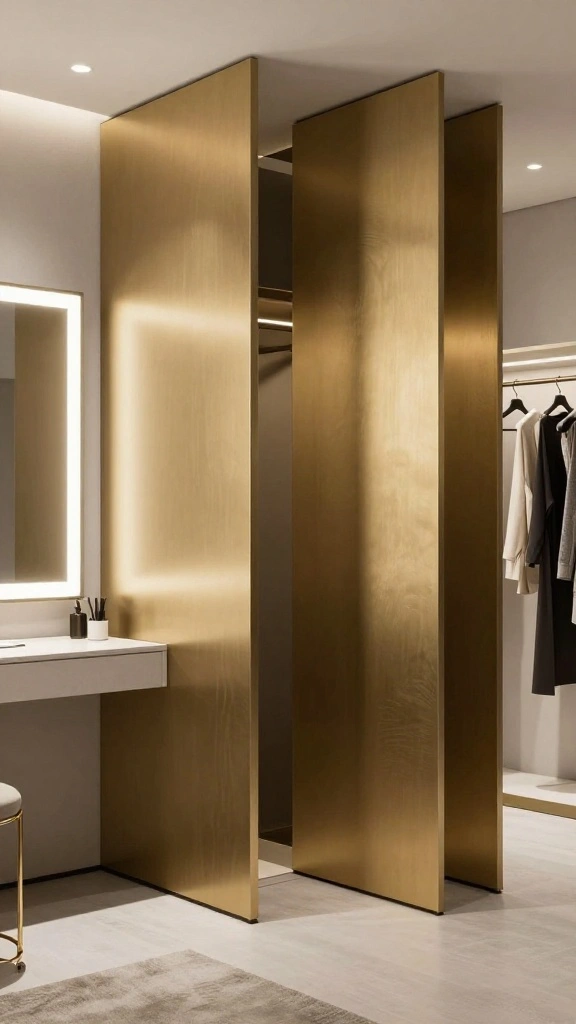 For a contemporary touch, minimalist metal partitions can redefine your dressing room. Featuring geometric shapes and clean lines, they embody a sleek aesthetic that pairs well with various design styles. These partitions can be painted or left in their natural finish, providing a stylish and durable solution for separating spaces.