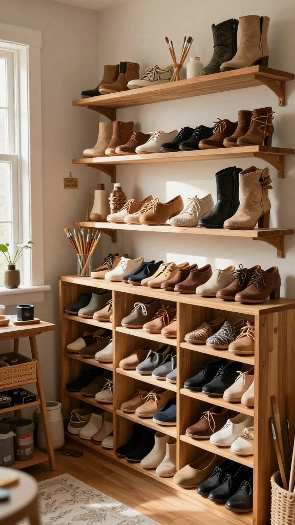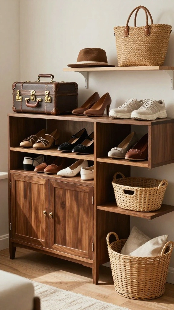 This method elevates your decor while ensuring shoes remain hidden and neatly stored.