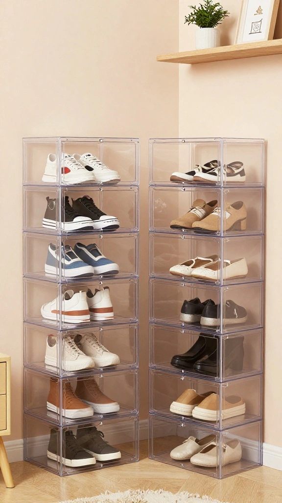 – Transparent shoe boxes are a stylish way to display your shoe collection while keeping dust at bay, allowing you to see what you have at a glance.