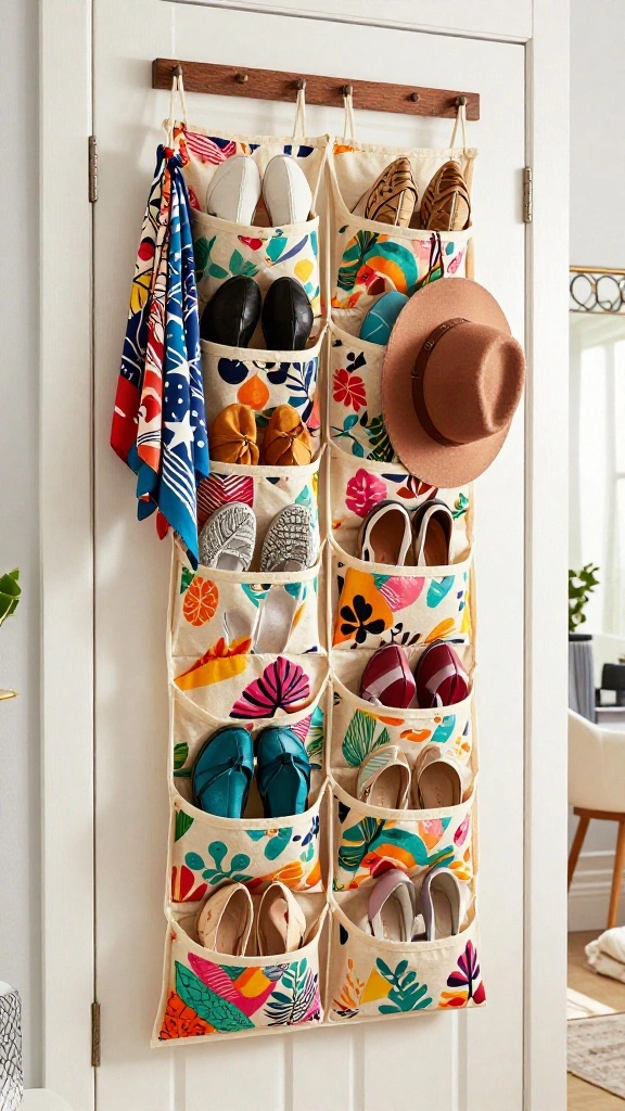 With various pockets available, you can easily sort shoes by style, making selection quick and hassle-free. This method not only enhances organization but also introduces a playful element to your decor.