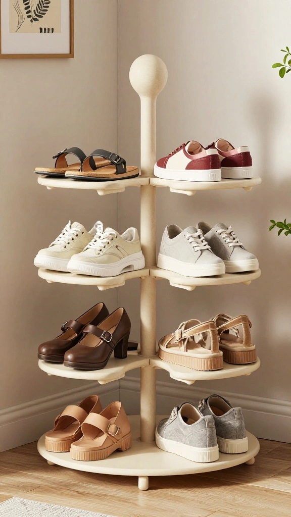 If you enjoy a dynamic storage solution, rotating shoe racks provide an innovative way to keep your collection organized. These racks can accommodate numerous pairs and allow for quick access to your favorites. Look for designs made from sustainable materials to support your eco-friendly lifestyle while enhancing your space.