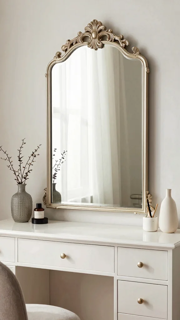 A stylish mirror can serve as both a functional tool and a work of art, elevating your dressing room aesthetic.