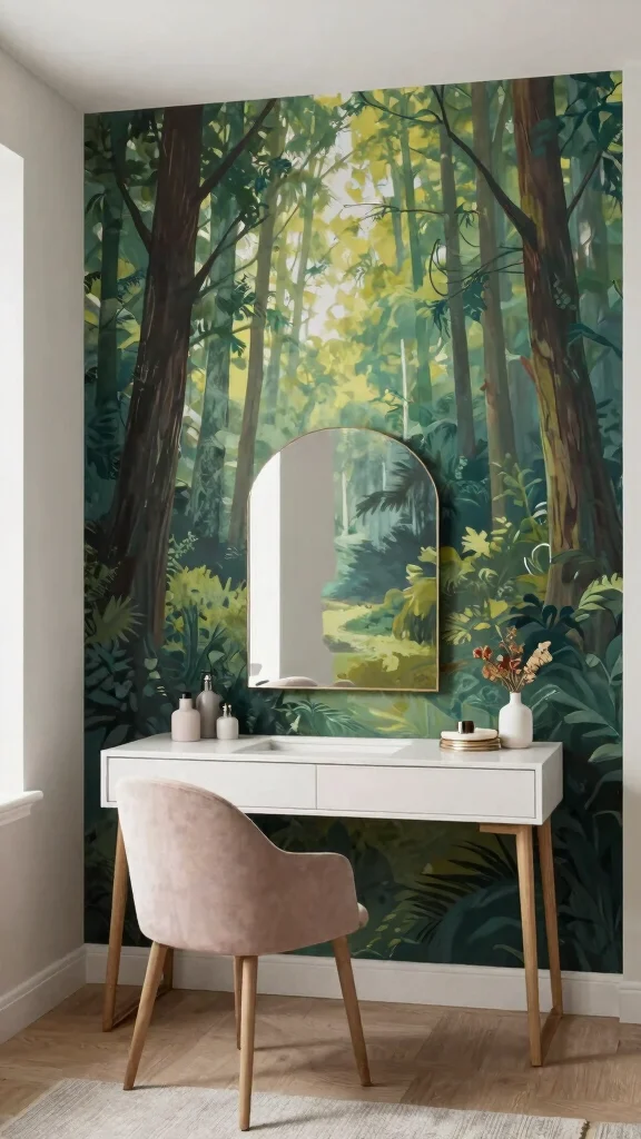 Transform your dressing room with a bold statement mural that captures breathtaking landscapes or whimsical scenes. A mural can serve as a stunning focal point, instantly changing the room’s atmosphere. Choose a design that resonates with your personality, whether it’s a tranquil forest scene or a vibrant cityscape, to create an inspiring space.