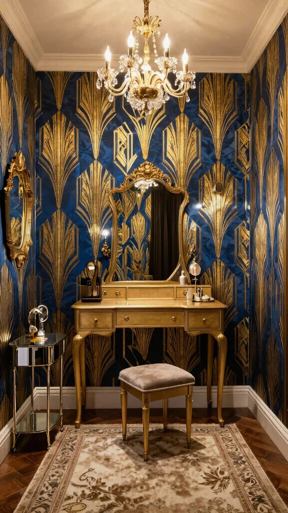 To enhance the opulence of Art Deco, focus on a rich color palette filled with deep blues, golds, and blacks. Pair these wallpapers with vintage-inspired furniture to amplify the luxurious feel without overspending. Layering different textures will add depth and richness to your dressing room.