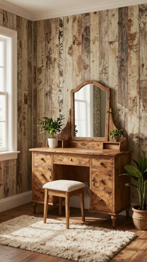 Rustic farmhouse wallpaper can create a warm, inviting atmosphere in your dressing room. Think of designs that feature natural elements like wood grains, classic plaid patterns, or distressed textures. This style embraces comfort and simplicity, making it ideal for anyone wishing to create a cozy retreat.