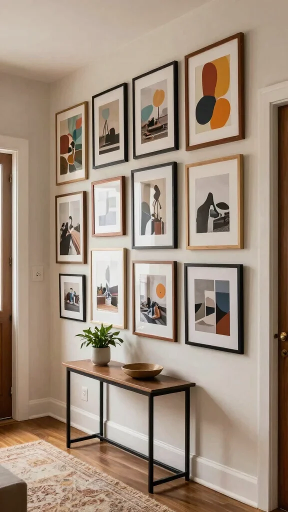 Wall art has the incredible ability to transform your hallway from a simple passage into an engaging gallery. By adding personal pieces or curated collections, you can infuse warmth and character into the space, making it inviting for guests. Gallery walls are particularly effective, allowing for a mix of frame styles and sizes that create visual interest along a longer corridor. Think about incorporating family photos, unique art pieces, or mirrors to enhance depth.