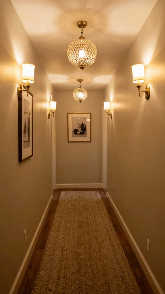 Layered lighting not only brightens your hallway effectively but also enhances your decor, making the space feel vibrant and welcoming.