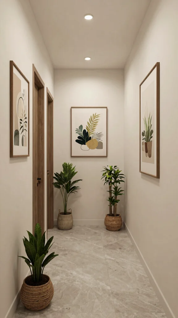 Natural elements not only beautify your hallway but also foster a serene atmosphere that warmly welcomes your guests.