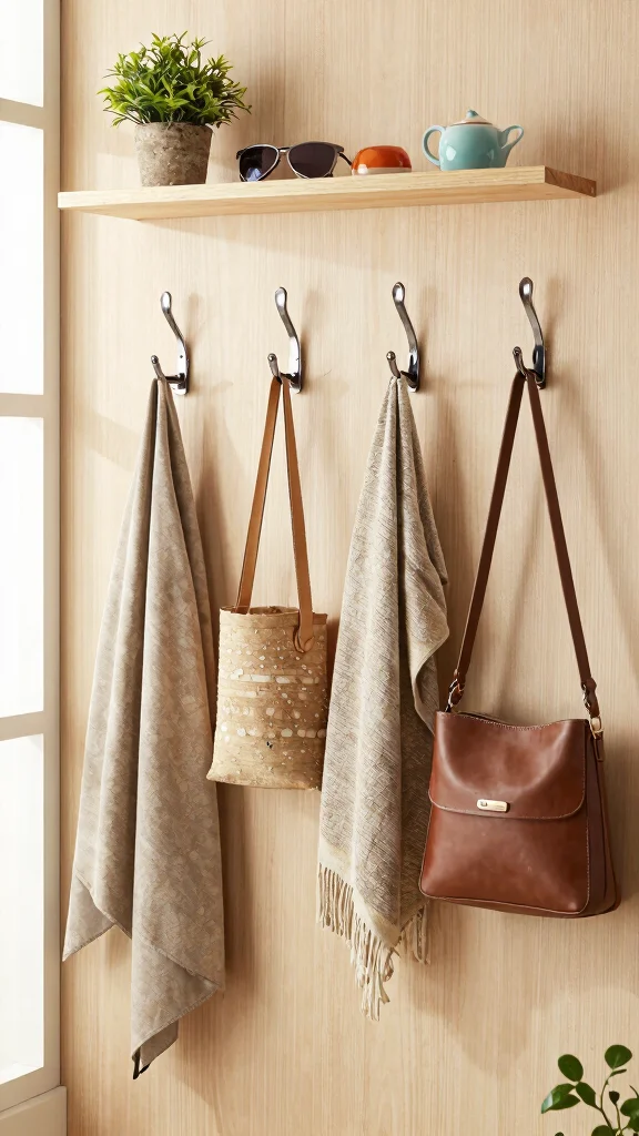 Install stylish hooks for coats and bags to keep your entryway organized and clutter-free.