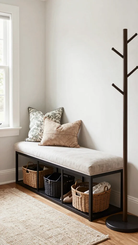 A well-chosen storage bench not only declutters your entryway but also serves as a chic seating solution.