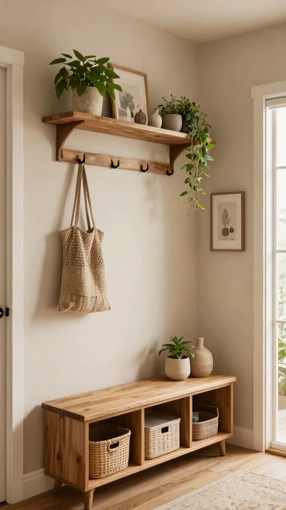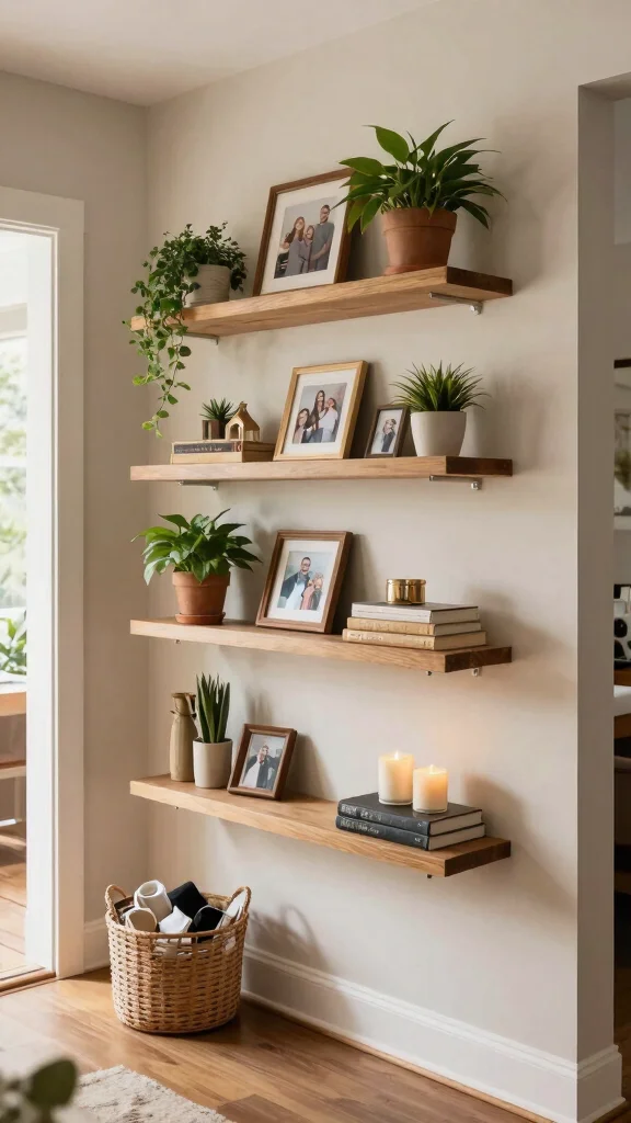 Floating shelves are an excellent way to optimize vertical space while showcasing your favorite items. These shelves can be perfect for storing keys, displaying vibrant plants, or featuring cherished family photos. Imagine a wall adorned with shelves in varied lengths, either painted in a bold color or left in neutral tones to harmonize with your decor. By mixing functional storage with aesthetic appeal, you can transform your entryway into a stylish gallery.
