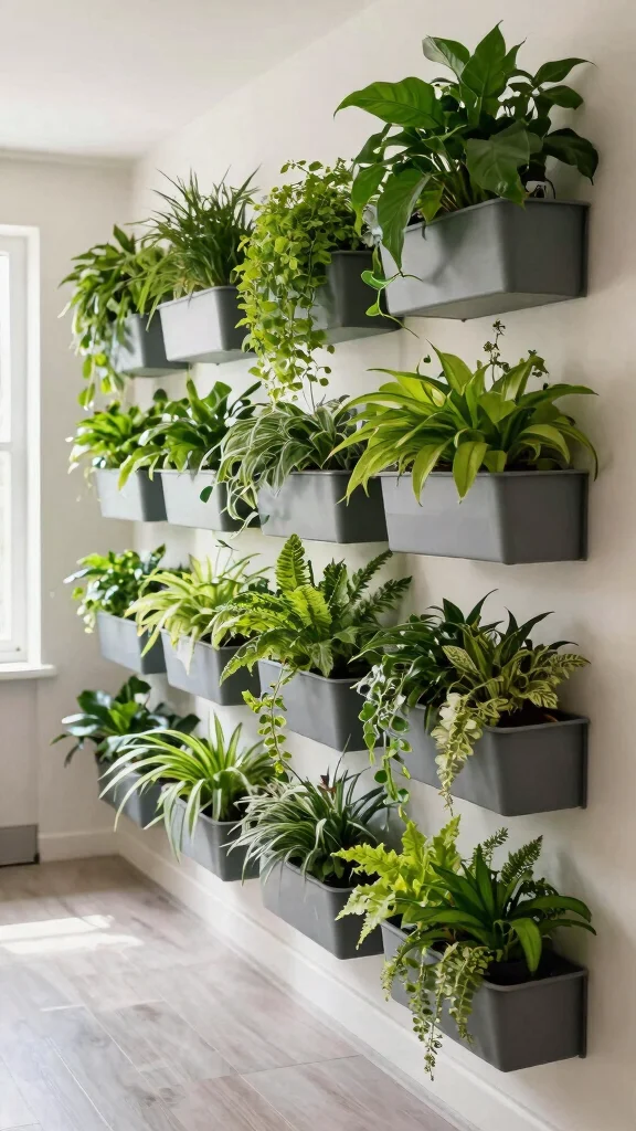 Greenery on the wall makes you smile before you even step inside. Vertical planters turn empty hallway walls into a fresh, organized focal point, proving hallway organization ideas can fit into real life. Easy-care plants keep maintenance tiny and mood big.