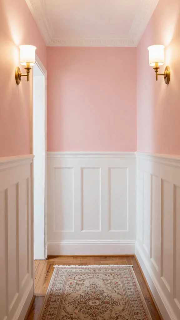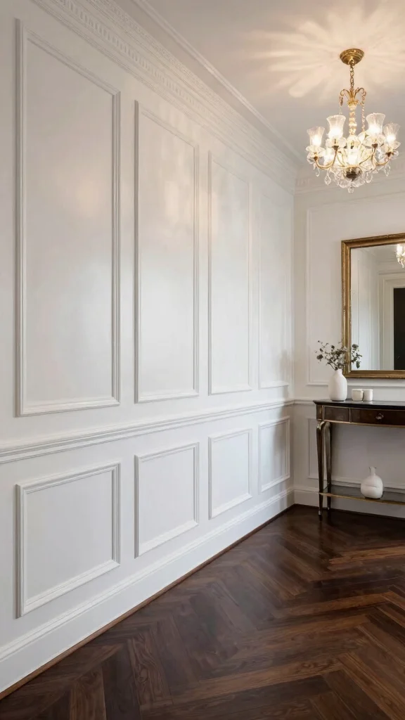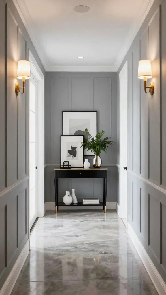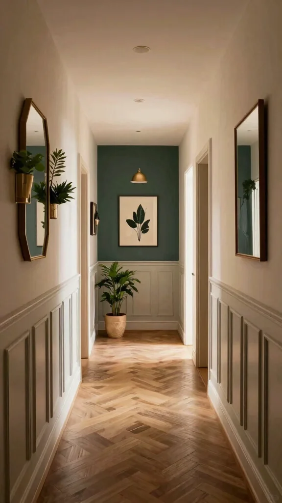 Incorporating classic wainscoting not only adds elegance but also introduces texture, making the hallway feel more inviting and refined.