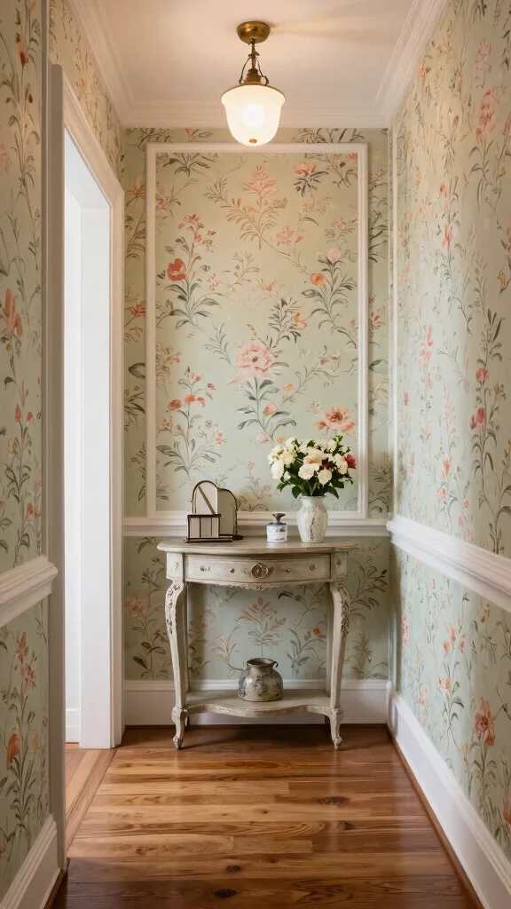 Vintage wallpaper panels can transport your hallway back in time, making every walk through a delightful journey.