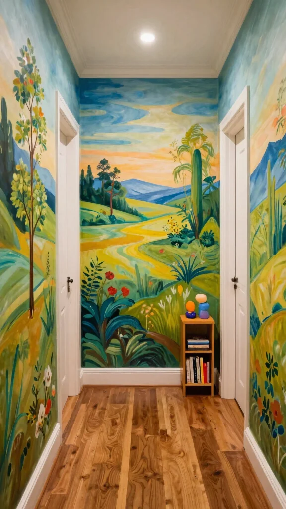 Painted mural panels can inspire conversations and provide a unique backdrop for family memories, making your hallway a true reflection of your style.