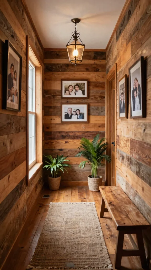 This design not only personalizes your hallway but also creates a warm backdrop for artwork or family photos, enriching the overall ambiance.