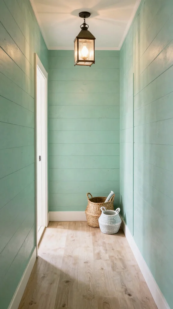 Vintage shiplap panels introduce a charming coastal vibe to your hallway. This style typically features horizontal wooden boards, either left in their natural state or painted in soft, inviting colors. Shiplap evokes nostalgic feelings reminiscent of beach houses and farmhouses, creating a cozy and inviting atmosphere. You can enhance this look with nautical decor or rustic accents for a cohesive design.