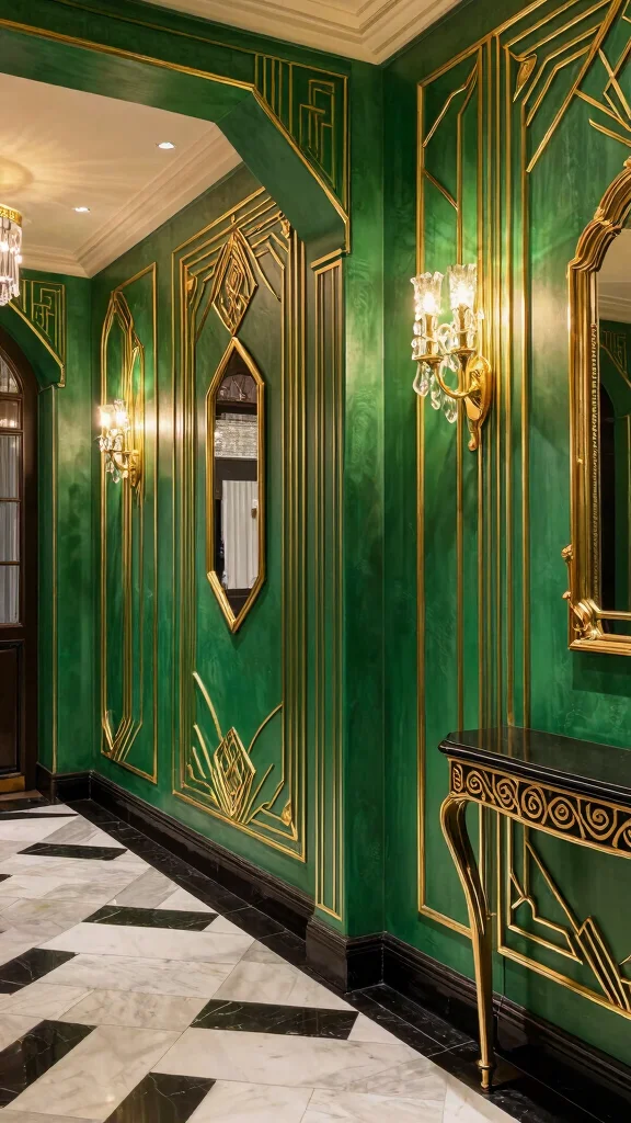 When implementing this design, experiment with gold or silver accents to elevate the overall look. Pair with vintage furnishings for a cohesive Art Deco theme. You might opt for deep colors for a moody atmosphere or lighter shades for a brighter feel.