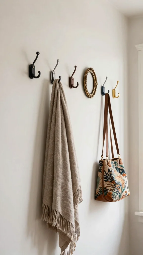 Utilizing decorative hooks not only keeps your hallway orderly but also adds to its aesthetic charm.