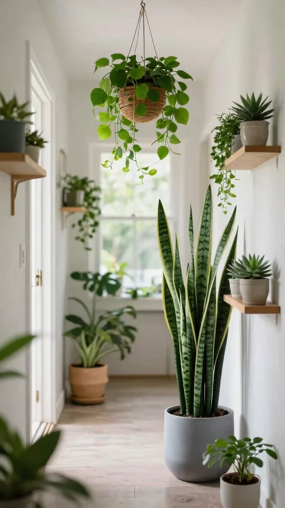 Select plants that thrive in lower light conditions, such as snake plants or pothos, to ensure they flourish. Regularly rotating your plants not only keeps them healthy but also adds dynamic visual interest. Stylish pots that align with your decor theme can further elevate your hallway’s aesthetic.