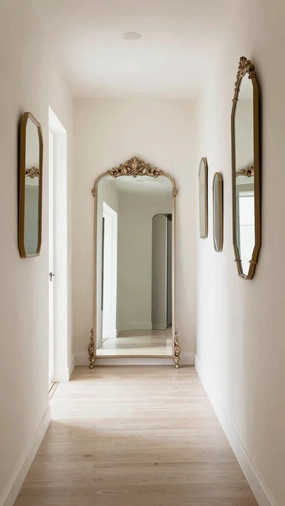 Mirrors are incredible tools for making a hallway feel more spacious and inviting. Positioning a large mirror at the end of the hallway or arranging smaller mirrors in an artistic display can enhance the decor while reflecting light throughout the area.