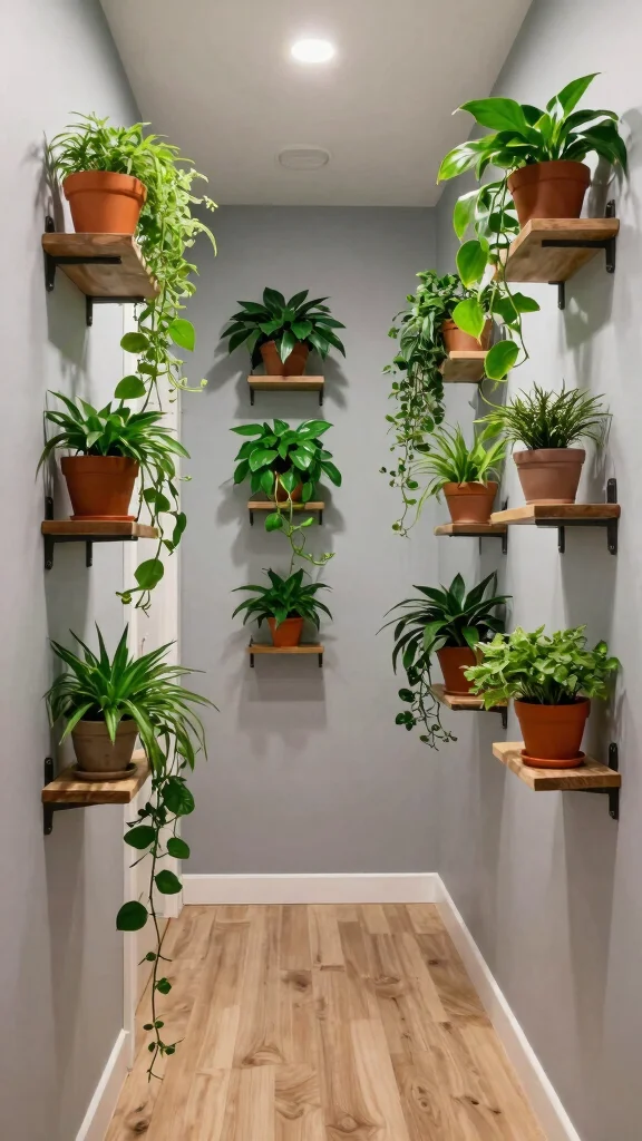 Adding potted plants to your hallway can infuse the space with life and a splash of color. Not only do they enhance your decor, but they can also improve air quality, making your home feel fresh and inviting. Opt for low-maintenance plants like succulents, snake plants, or pothos, which thrive in low-light conditions. Create a vertical garden by using wall-mounted planters or a simple shelf to display your pots, adding layers of interest.