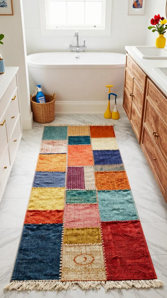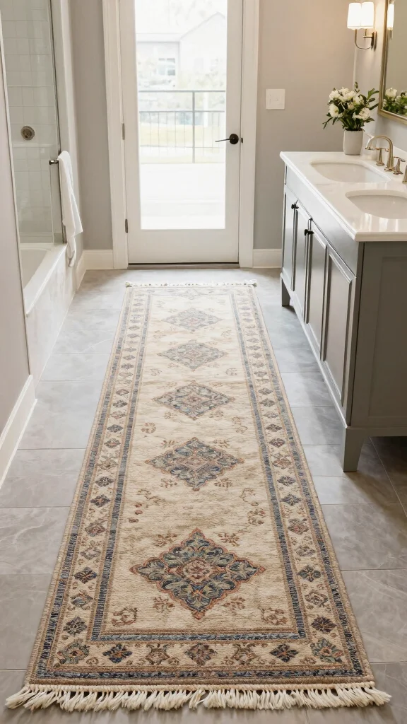 Select indoor-outdoor rugs for durability and easy cleaning, perfect for high-moisture areas like bathrooms.