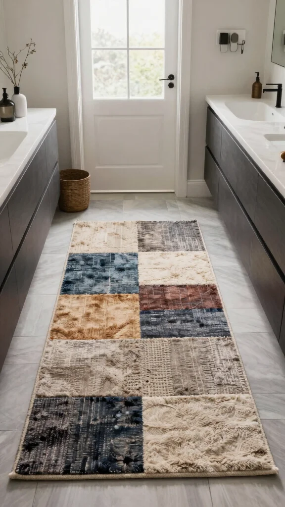 Combine different rug styles and sizes to create visual interest and depth in your bathroom space.