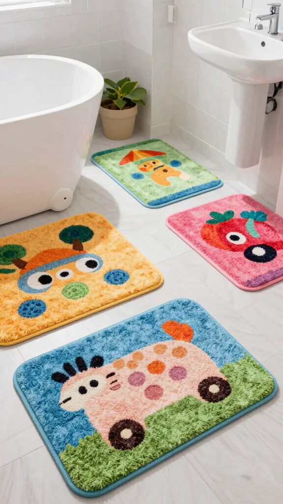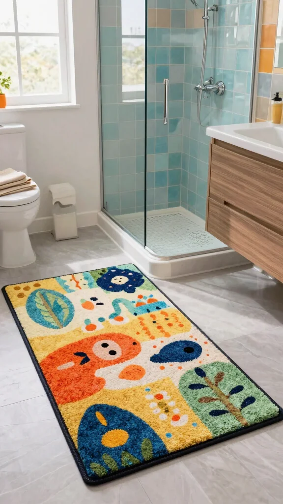 These eye-catching mats not only enhance visual interest but also elevate the overall energy of your bathroom, making it a fun and welcoming space.