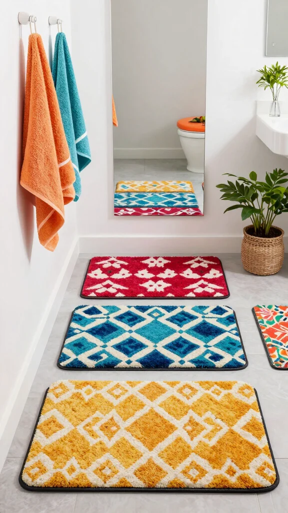 For those eager to express their personality, vibrant patterned bathroom mats provide an exciting opportunity. With choices ranging from whimsical florals to striking geometric designs, these mats can infuse life into your space and break up bland neutrals. Imagine a bright mat harmonizing with colorful towels, creating a lively atmosphere in your bathroom.