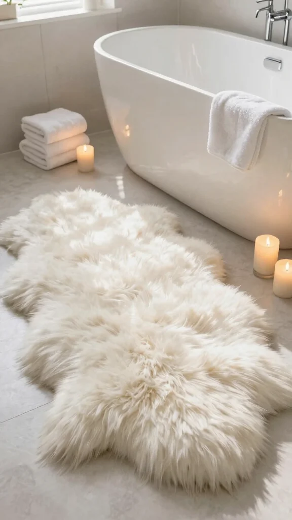 Nothing evokes a cozy atmosphere quite like a faux fur rug in your bathroom. These luxurious rugs provide a soft surface to step onto after a hot shower, creating a warm and inviting space. Imagine a plush faux fur rug in a classic white or bold color, adding a stylish accent to your decor.