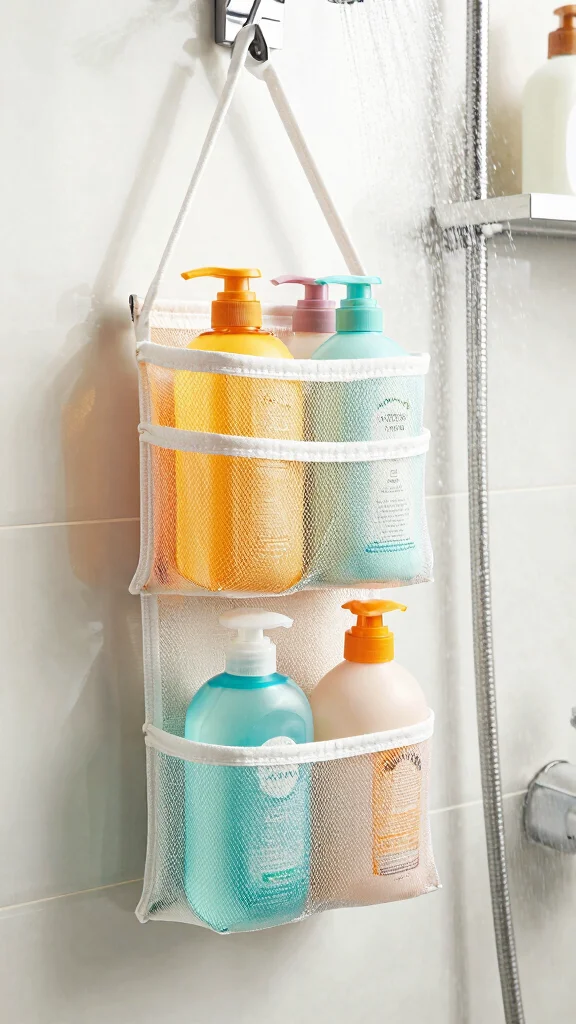 – Hanging organizers can save space while keeping your products within reach, making them perfect for small showers.