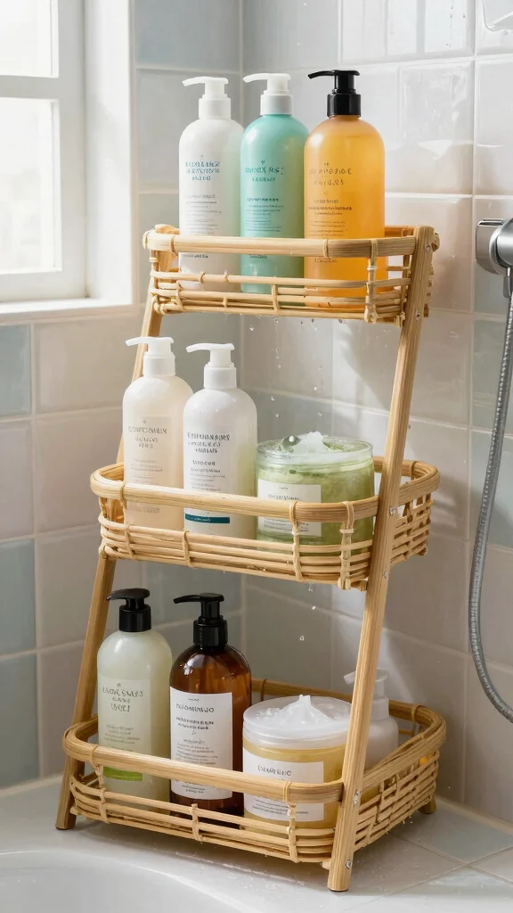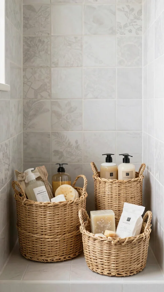 A tiered basket system not only keeps your essentials tidy but also serves as a stylish focal point in your shower area.