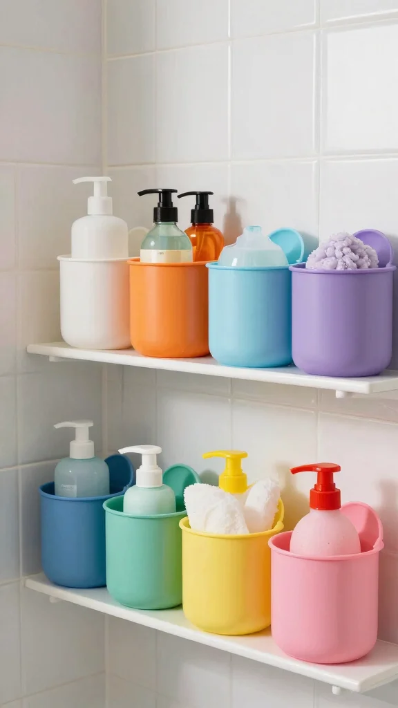 Color-coding your shower items is a fun and engaging way to maintain organization. Use containers in different colors for specific categories, such as shampoos, conditioners, and shaving supplies. This method not only makes it easier to find what you need but also creates a lively atmosphere in your bathroom. Opt for containers made from sustainable materials for an eco-conscious twist.
