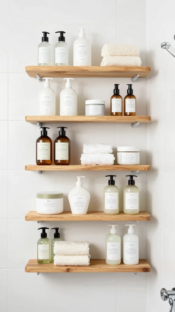 Adjustable shelving provides a flexible solution that adapts to your evolving needs. By installing adjustable shelves in your shower, you can customize the height based on your product sizes. Choose shelves made from eco-friendly materials to adhere to sustainable practices. This option allows you to create a tailored organization that grows with your necessities.