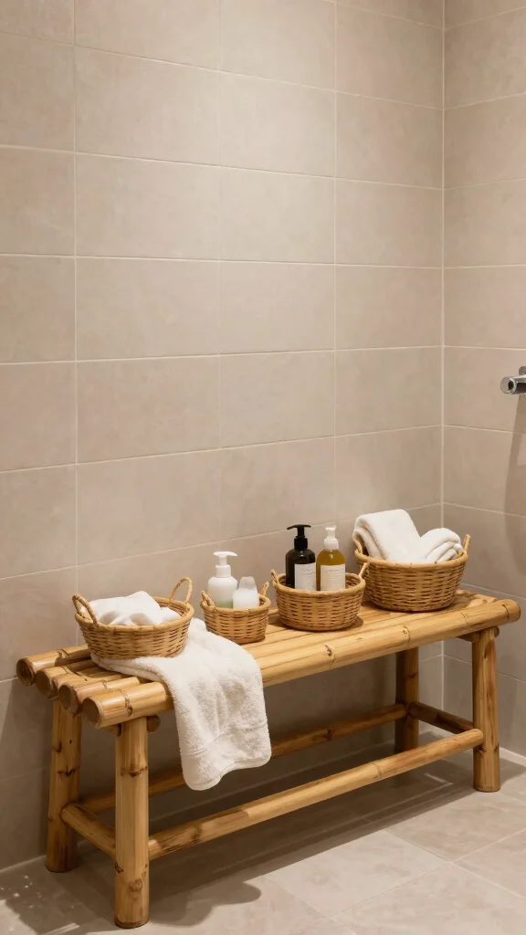 Tiered baskets are an excellent way to maximize vertical space in your shower. By stacking items, you maintain accessibility while keeping everything organized. Choose baskets crafted from sustainable materials like bamboo or recycled plastic to reduce your environmental impact. This approach is not only practical but also visually appealing, allowing you to store everything from bottles to sponges in style.