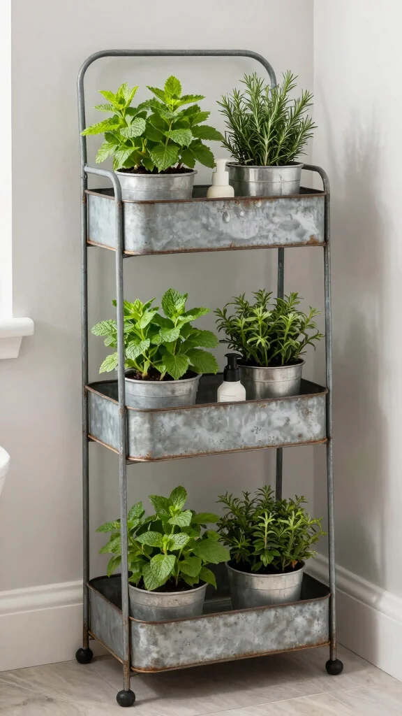 Select a stand with a waterproof finish to ensure it withstands humidity, and mix succulents with decorative stones for added texture. They can double as a display for bath products, enhancing both beauty and functionality.