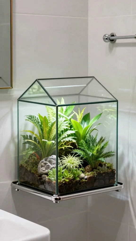 Elevate your bathroom with a stunning glass terrarium caddy that not only organizes your plants but also creates a captivating visual centerpiece. The clear glass allows sunlight to nourish plants, making it perfect for mini-gardens filled with air plants, moss, or delicate ferns. You can place your terrarium on a shower caddy or hang it up for a whimsical effect, enhancing the overall beauty of your bathroom while purifying the air.